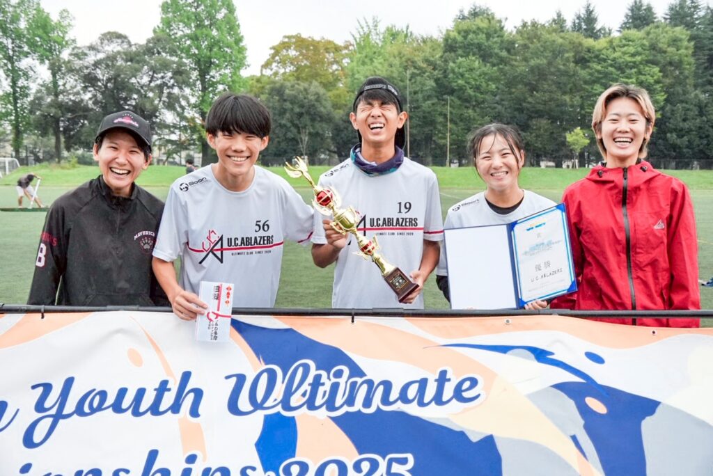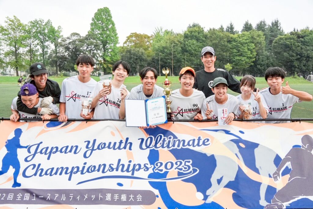 U.C.ABLAZERSは2025年10月4日(土)に行われた「第12回全国ユースアルティメット選手権大会」の高校生オープン部門に出場し優勝という成績を収める事ができました。